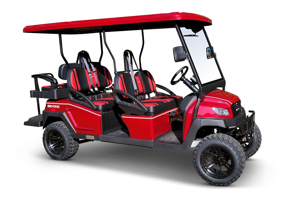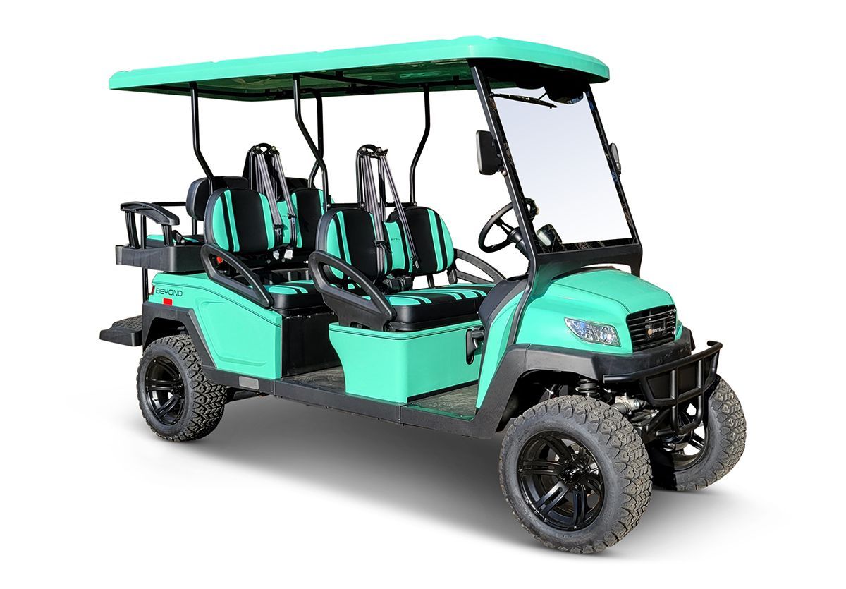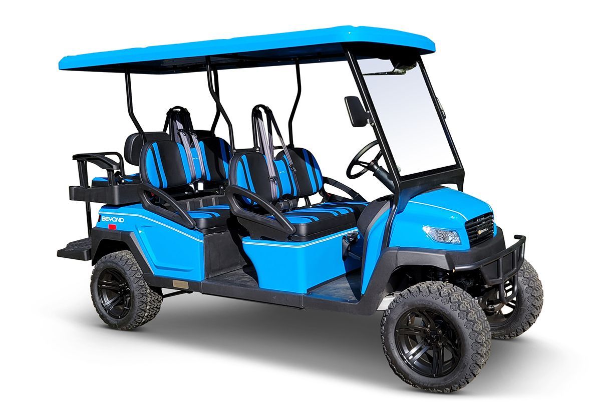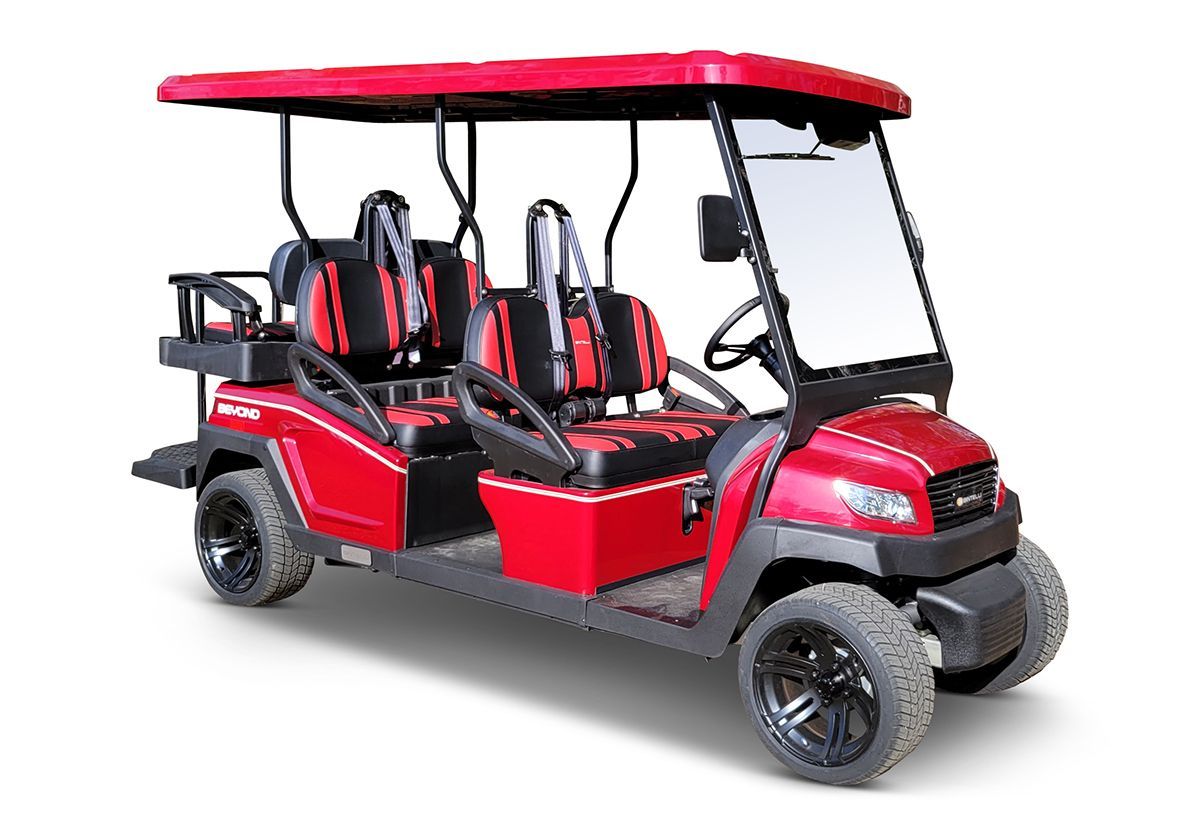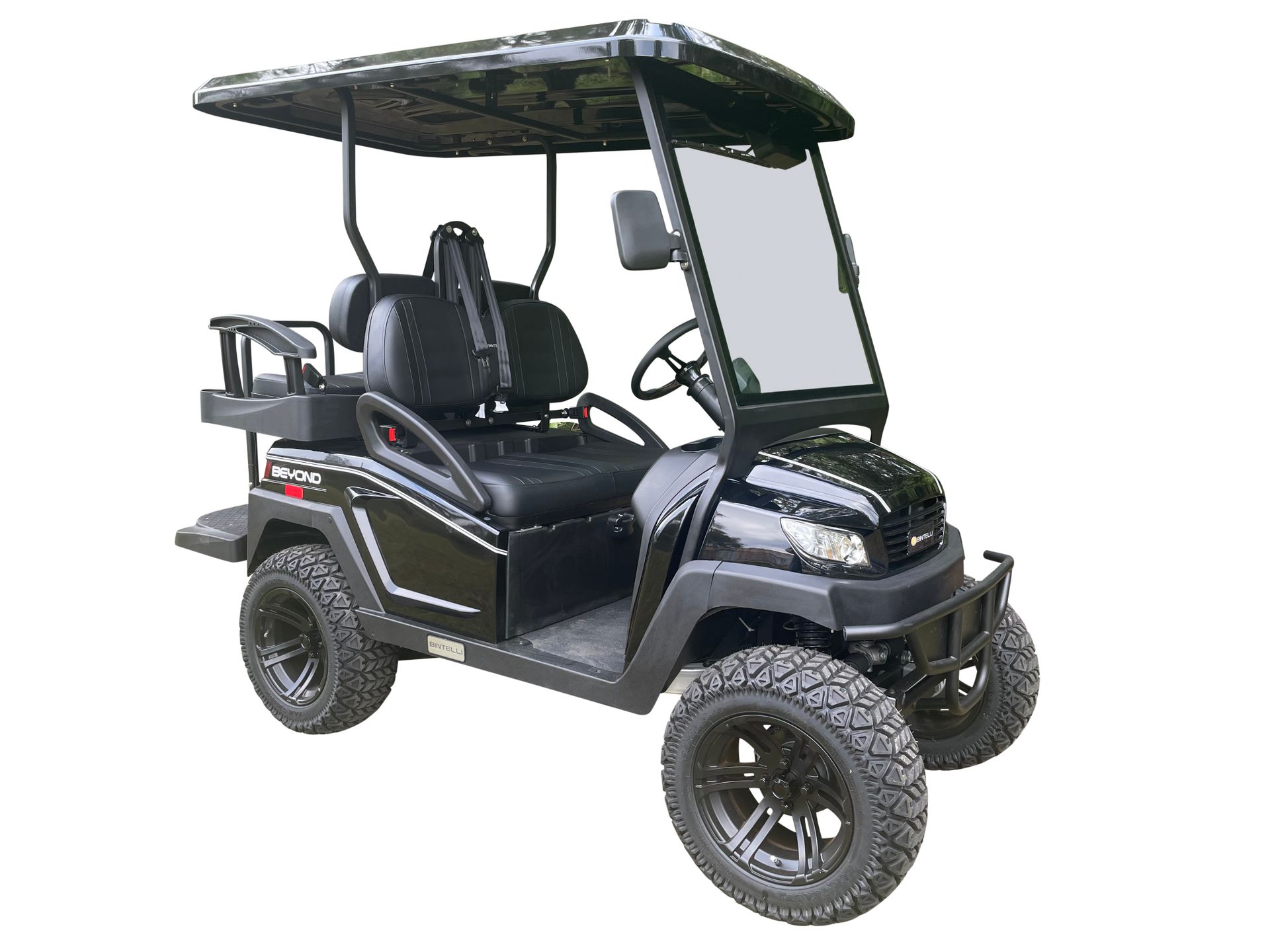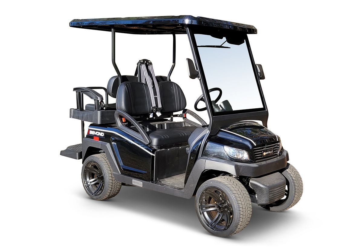Bintelli Beyond is a street legal golf cart that is the newest addition and fully loaded. Bintelli comes complete with an aluminum frame, aluminum roof supports, AC motor, LED lighting, 14″ wheels, a Bluetooth sound system, reverse camera, hydraulic disc brakes, two-tone premium seats, on-board smart charger, dual USB plugs, extended roof, rear flip seat, head lights, tail lights, turn signals, DOT windshield with wiper, DOT tires, DOT 3-point seat belts, and a 17 digit vin number.