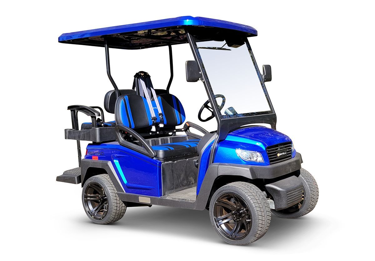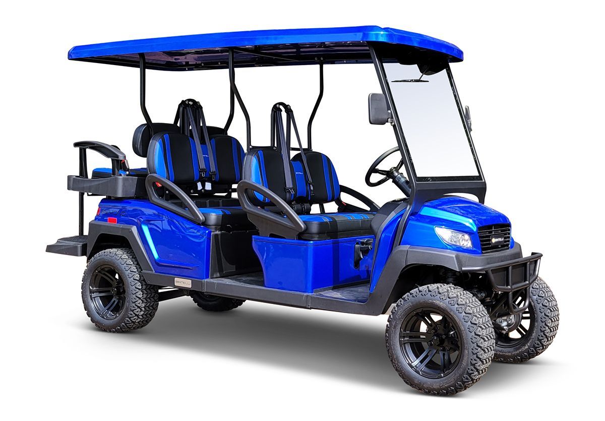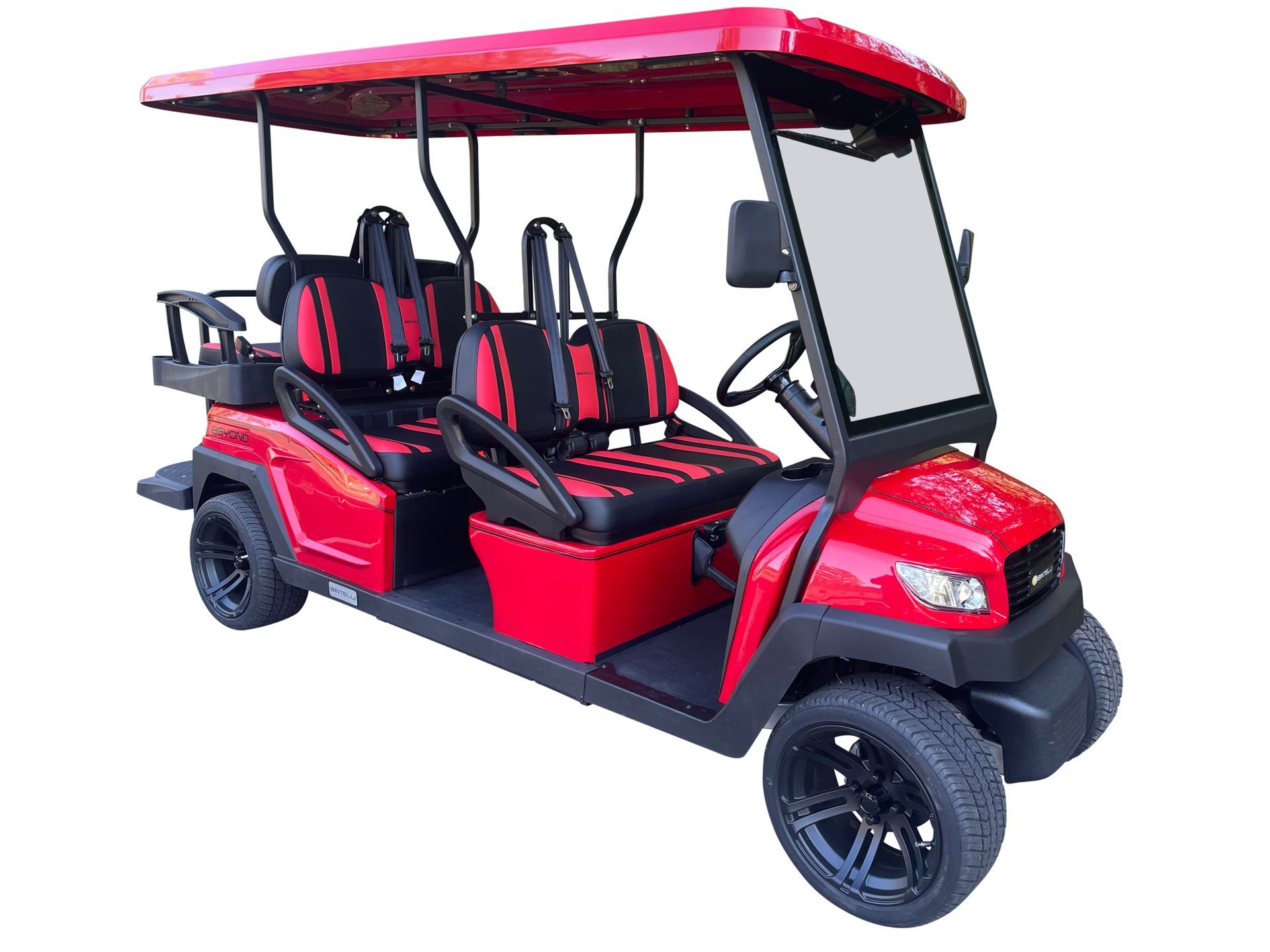We use Trojan Batteries (made in USA), Curtis controllers (made in USA), and Eagle on board smart chargers (made in USA). Our street legal vehicles also come fully loaded with aluminum rims, wood grain accents, 12v power outlet, digital dashboard, windshield wiper, solid AS1 windshield, powered beverage cooler, DOT Seatbelts and tires, high/low-speed switch, and one of the longest ranges in the market. Our standard LSV golf carts are available in two to eight seat configurations.